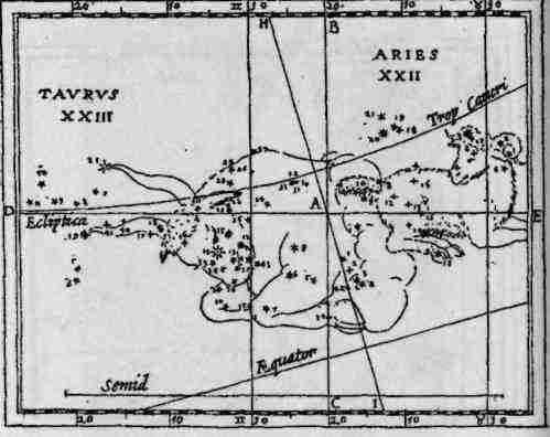 Рис. 104. Созвездие Тельца на звездной карте из книги Гринбергера (Grienberger) [1162]. Книгохранилище Пулковской обсерватории (Санкт-Петербург). См. также [542], с. 45, ил.19